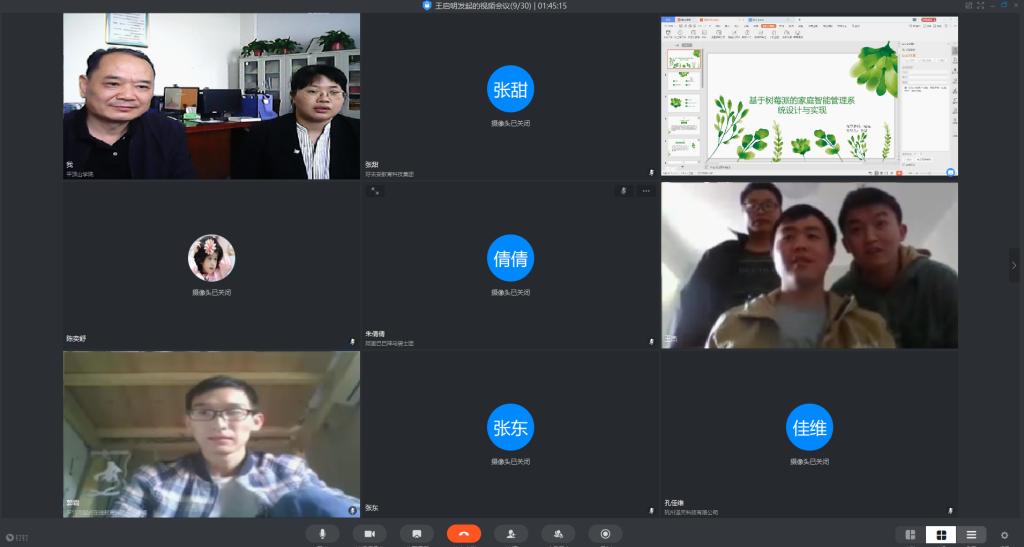 电子信息工程专业和物联网信息工程专业共335名学生分为6组在钉钉会议上进行答辩。此次线上答辩工作经过院系的周密研讨,形成《2138CC太阳集团2020届学生线上毕业论文答辩工作实施方案》,并将答辩形式,答辩分组,答辩流程,答辩注意事项等以文件的形式提前发与学生,针对学生从未接触线上答辩的客观情况,录制演示视频,帮助学生熟悉线上答辩操作。答辩过程中,答辩人事先把拍摄的实物视频发给答辩老师,然后进行论文内容、研究方法和创新点的PPT展示和阐述;由学院老师组成的答辩小组成员对答辩人进行提问,给予学生适当的思考时间后,答辩人开始答辩;最后,答辩小组人员分别对答辩人的回答进行补充和评价,丰富学生答辩内容。线上答辩结束后,答辩小组综合学生的毕业论文的学术水平和答辩人的答辩情况进行评议,确定学生毕业论文答辩成绩,对学生的毕业论文(设计)质量进行严格评审。