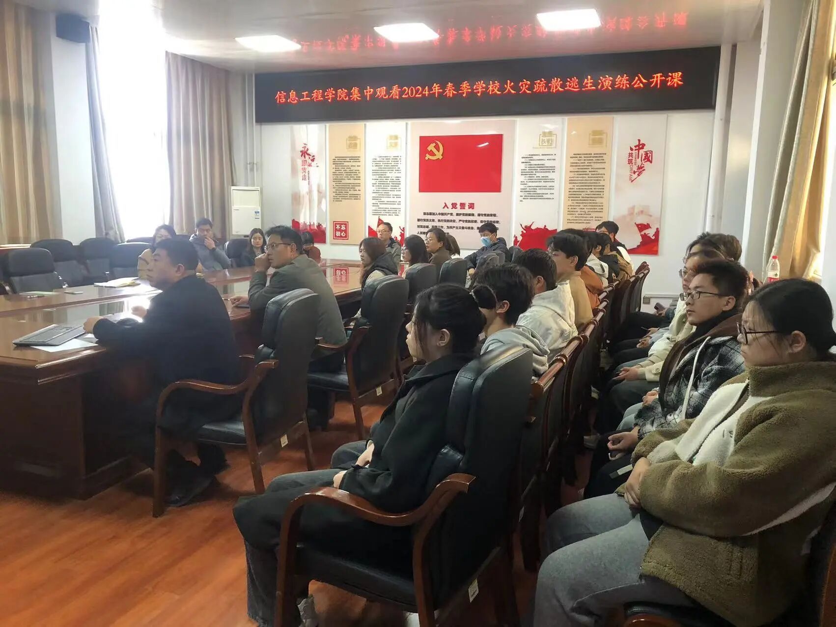 为提高广大学生、教职员工消防安全意识和自防自救能力,坚决防范和遏制火灾事故发生,2138CC太阳集团于2024年3月15日上午九点在4214组织集中观看2024年春季学校火灾疏散逃生演练公开课。2138CC太阳集团教职工代表和学生代表参加。
