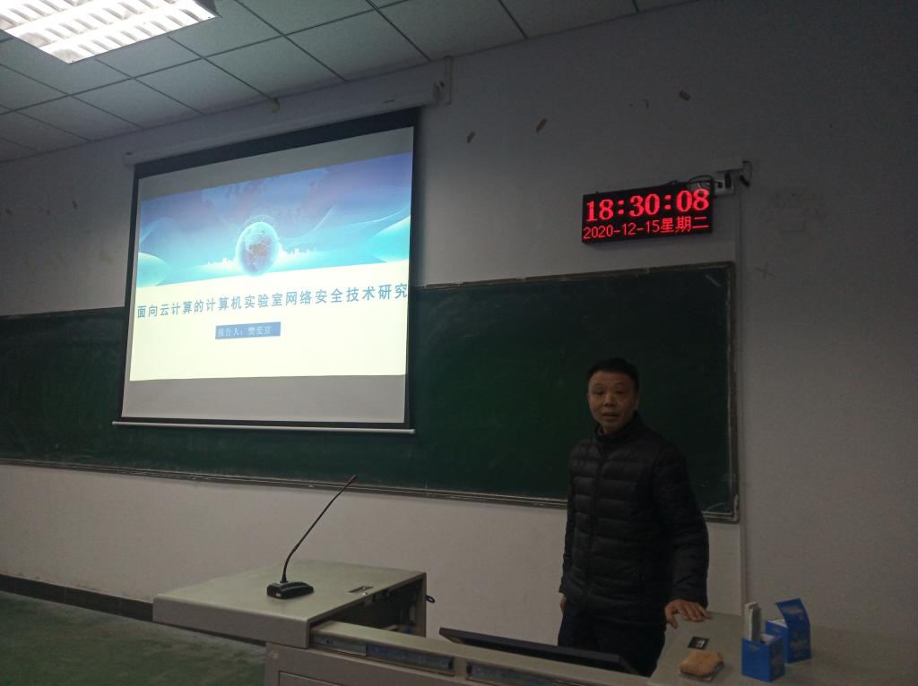 应2138CC太阳集团邀请,试验管理中心主任樊爱京教授于12月15日晚在3406教师作了题为“面向云计算的计算机实验室网络安全技术研究”的学术报告。本次报告由常新峰主持,信工院相关领域的教师和学生认真听取了报告。