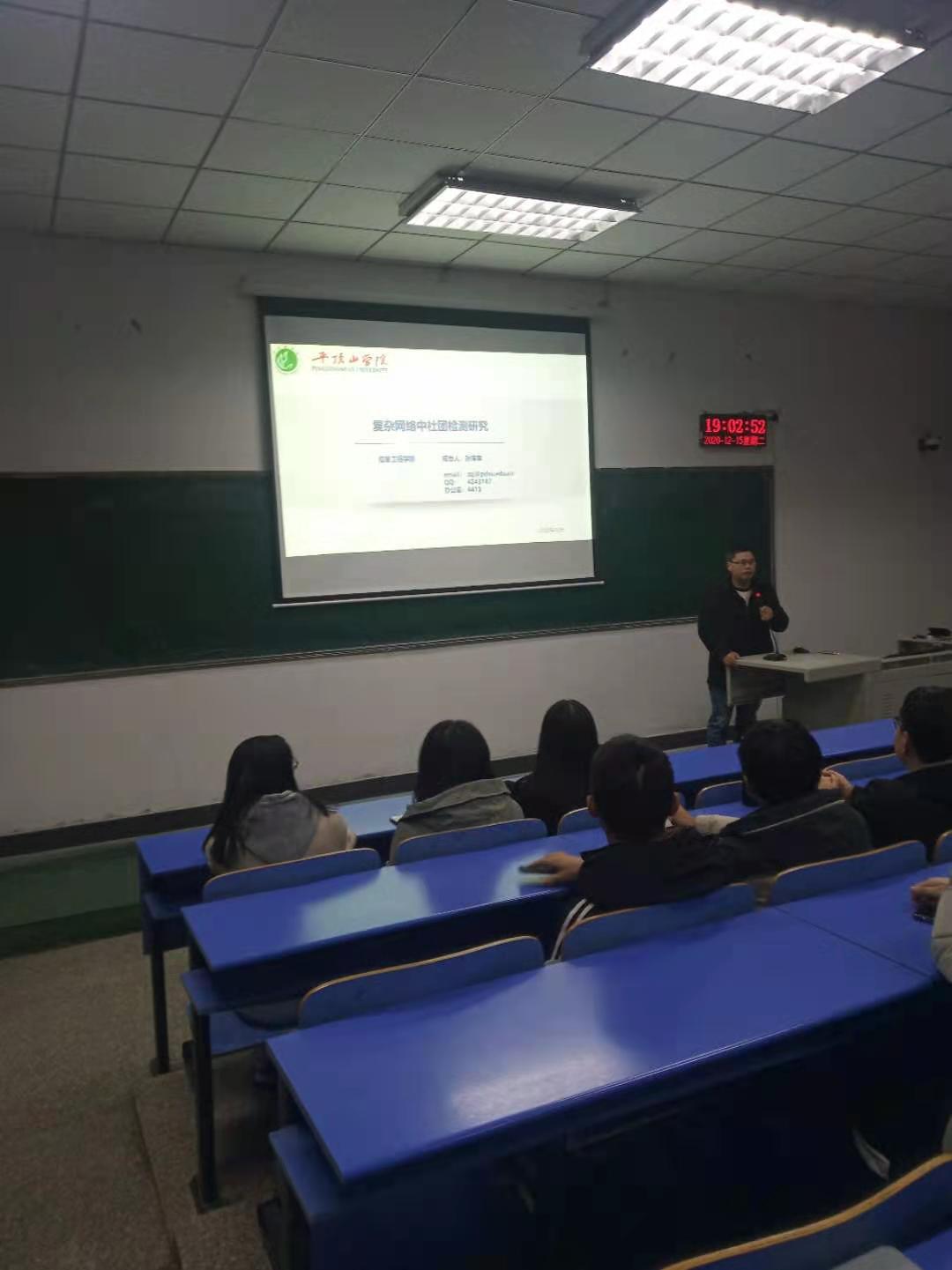 为了让同学们对复杂网络有初步的了解和认识,12月15日晚,2138CC太阳集团于3407教室开展以“复杂网络中社团检测研究”为主题的讲座。本次讲座有孙泽军博士担任主讲。