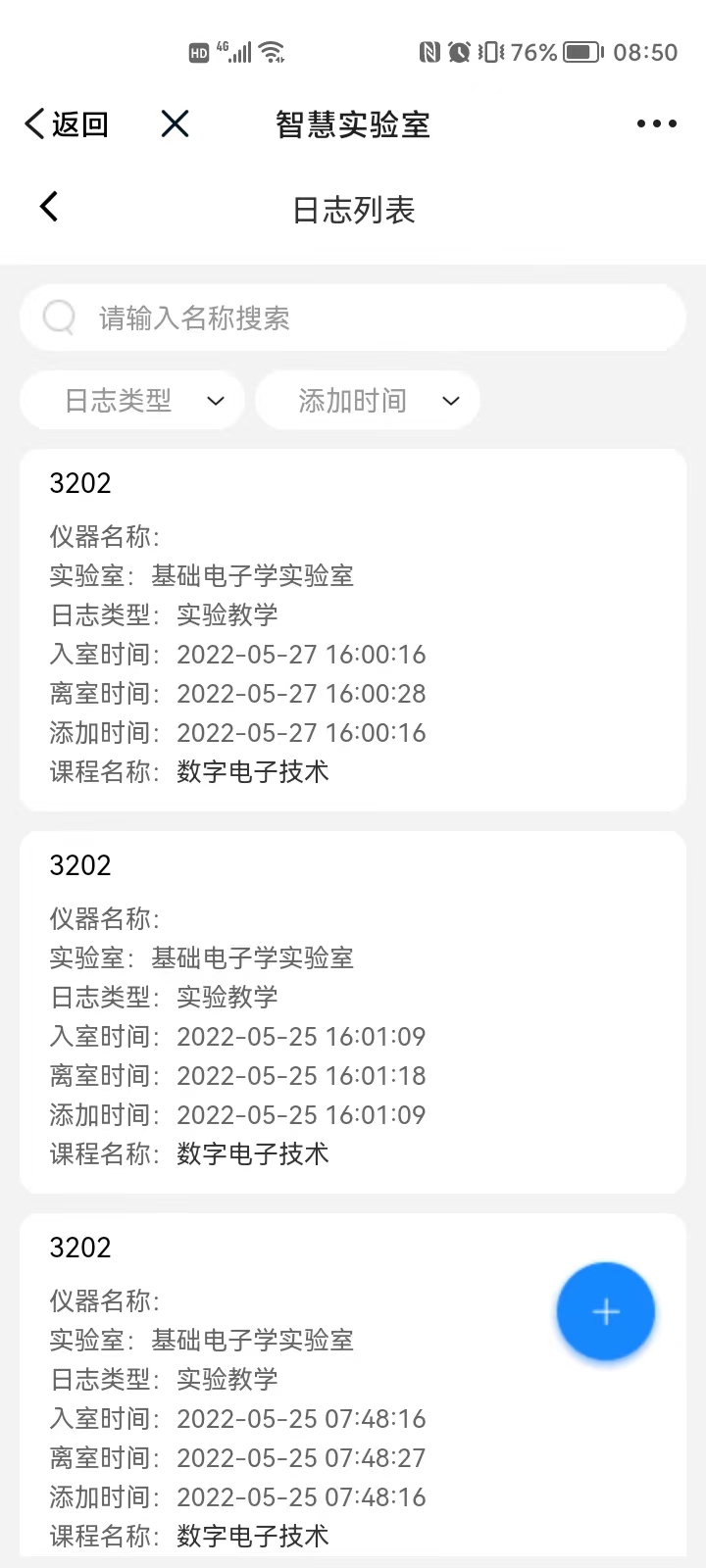 点击+号即可添加实验室使用日志。