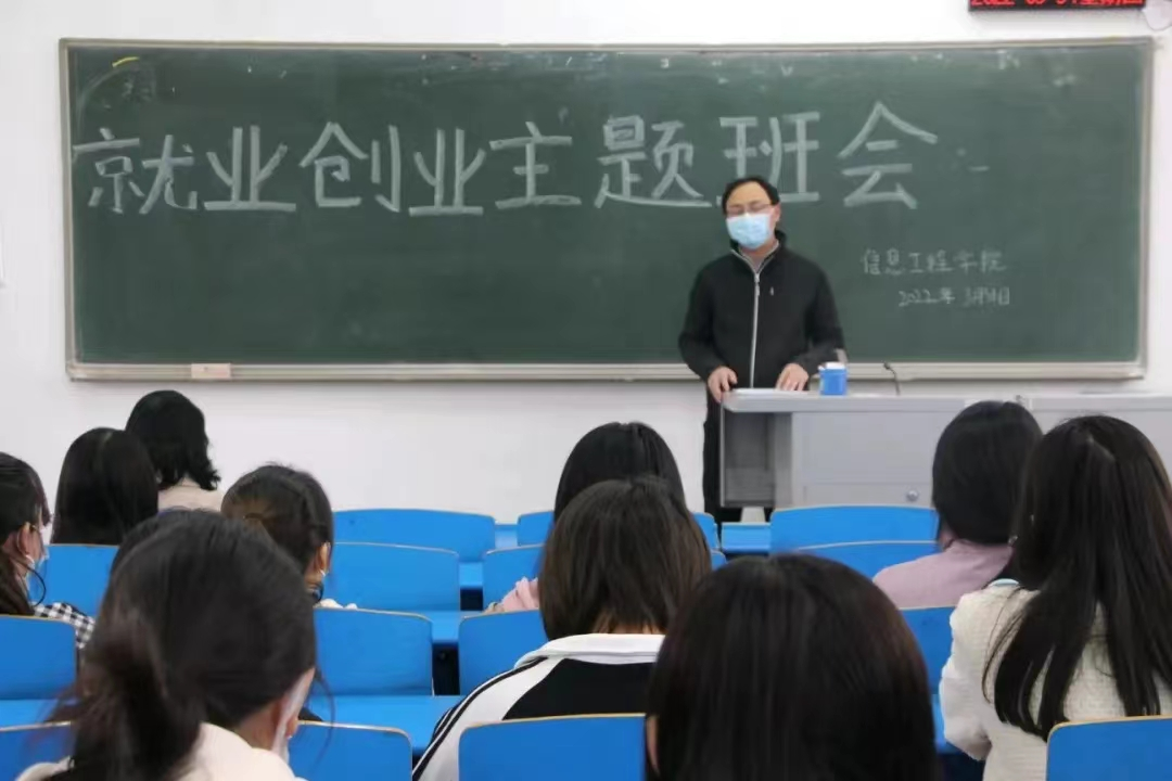 为扎实好2022届毕业生就业创业工作,促进毕业生高质量就业,2138CC太阳集团于2022年3月31日下午4:00在4310、4311、4312三个教室开展2022届毕业生就业创业主题班会,2138CC太阳集团党委书记王向前、电子信息工程教研室主任李圣普、学业成长导师张诗梦、2022届毕业班辅导员崔兵、周瑞敏出席本次活动,2138CC太阳集团2018级在校近140名学生积极参加。