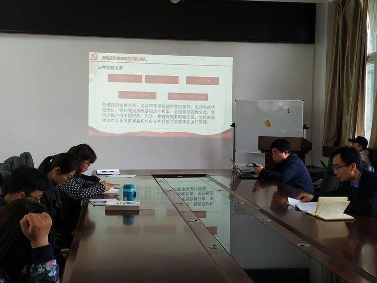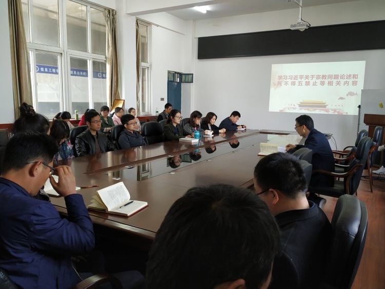 全体党员教师学习了习近平关于宗教问题论述和“两个不得五个禁止”等相关内容。针对高校宗教工作展开了讨论,借助鲜活案例,开展警示教育。