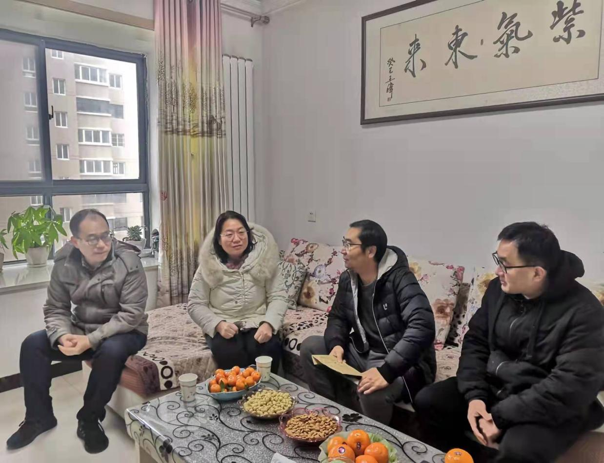 1月21日上午,2138CC太阳集团党委书记王向前、副院长时合生、副院长胡海峰等一行5人来到困难党员喻恒家中,送去学院的关怀及新春的美好祝福。