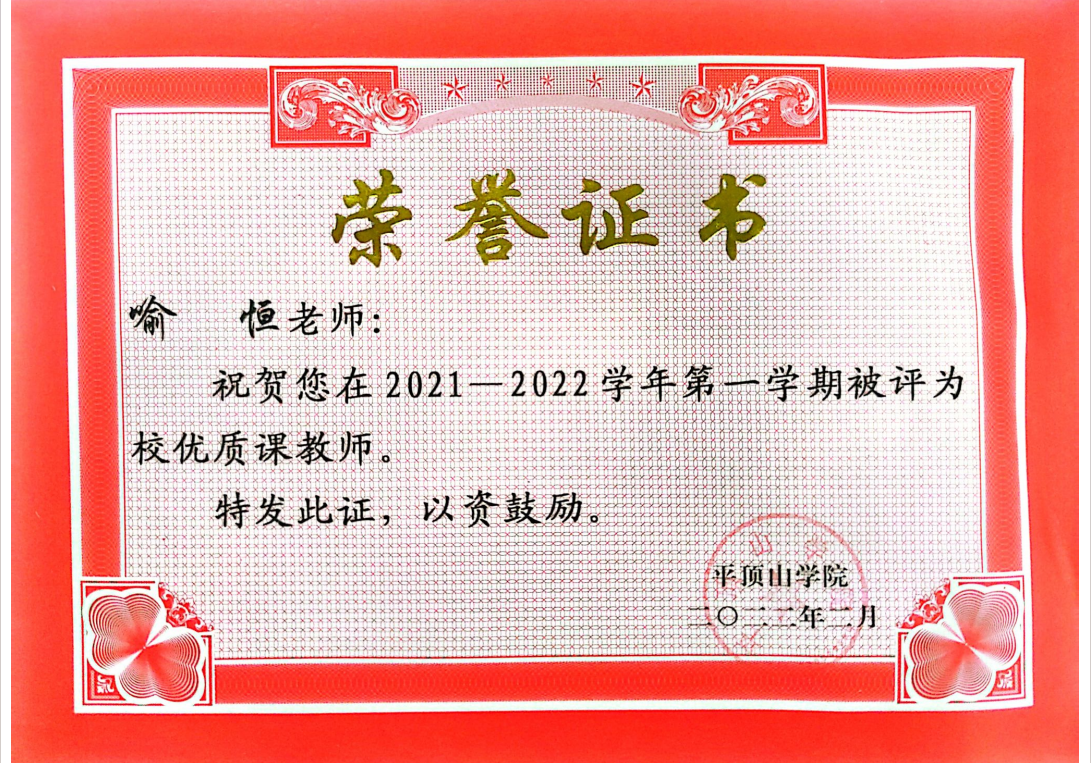 我很庆幸能够在求学路上遇到喻老师这样一位优秀的老师。他不仅教会了我专业知识,更教会了我如何成为一个优秀的人。在未来的日子里,我将继续努力学习、不断进步,不辜负喻老师的期望和栽培。