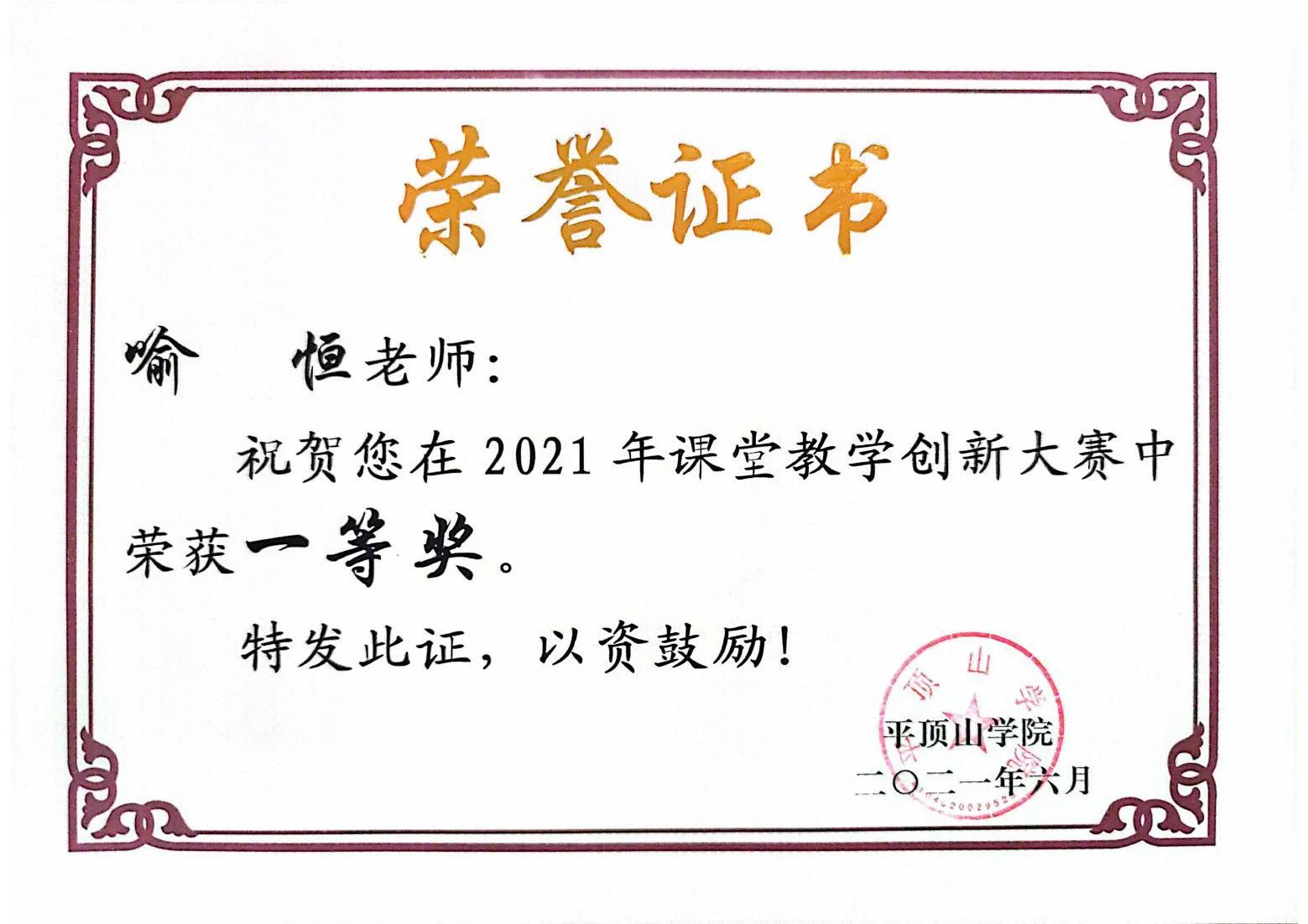 他以满腔热情对待自己的教育工作,始终将学生放在心中,即使身患疾病,仍然坚守岗位。他定期召开学生座谈会,就学生的学业、生活等各方面困惑予以解答,进行帮助。在他的坚持和努力下,年均完成470多教学课时,累计获得4次教学质量考评优秀,3次优秀毕业设计指导老师,并多次被评为“优质课”教师。自2014年成立软件开发双创与人工智能学生团队以来,他直接(第一)指导学生参加各类学科竞赛,获得国家级荣誉7项,省级荣誉39项。他将对学生的关怀和爱护融入到行动中,真正做到了理论与实践相结合,赢得了学生的广泛喜爱。