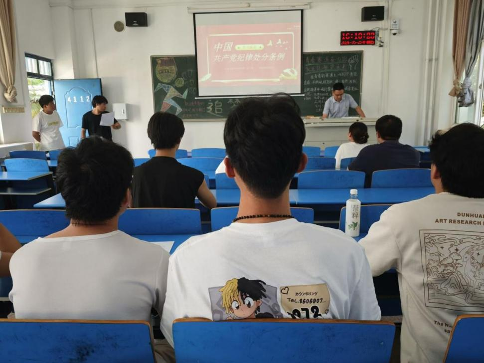 为深入学习宣传贯彻习近平总书记关于党纪学习教育的重要讲话精神,提升党员师生的纪律意识和廉洁意识,2024年5月,2138CC太阳集团党委组织各党支部开展“强化党纪意识,筑牢纪律防线”主题党日活动。各支部书记、全体党员、预备党员参加本次活动。