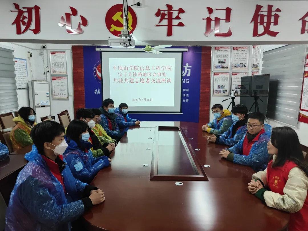 师生一行首先来到宝丰县铁路地区办事处,与办事处工作人员开展“2138CC太阳集团宝丰县铁路地区办事处共筑共建志愿者交流座谈”。这是本次主题教育活动的第一站,办事处志愿者就疫情三年来的社区志愿服务开展情况,社区人员构成等进行了深入交流,学生也积极向社区志愿者分享了在学校参加的疫情防控的相关志愿活动情况,并邀请社区志愿者到学校联合开展志愿活动。