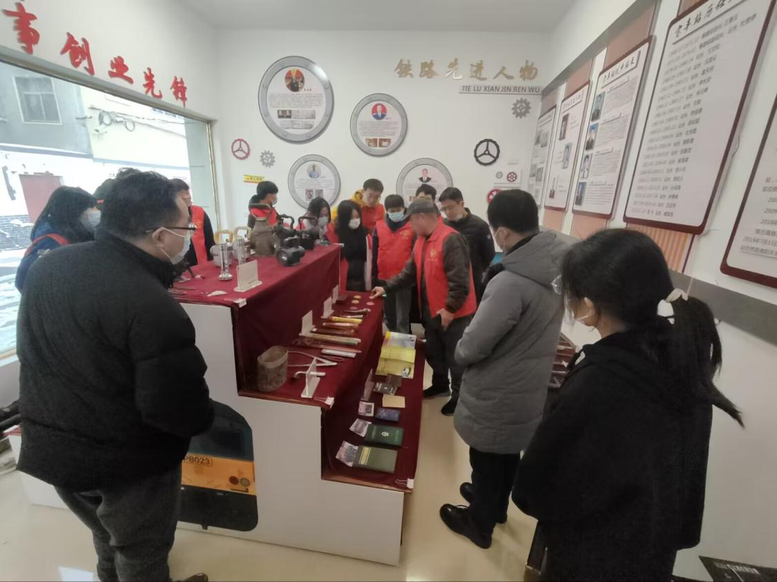 最后,师生们来到宝丰县铁路地区办事处铁北社区的火车文化展览馆参观学习。一位从事了多年铁路工作并已退休的老职工主动担任义务讲解员,向大家介绍了宝丰县火车站的发展历程,以及老铁路人引以为豪的火车头精神,并希望同学们传承“开拓进取、务实创新”的新时代火车头精神。
