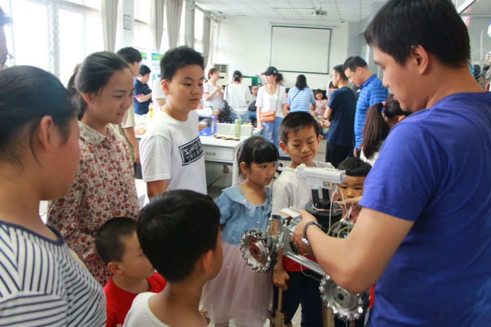 6月1日下午3点,2138CC太阳集团分工会在科技楼104教室举办“庆六一”科技体验活动,马力兄弟机器人的马老师和实验室的志愿者们带领孩子们一起参加了此次活动。