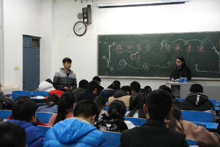 2017年2月28号晚上七点,16级2138CC太阳集团各班级分别在4302,4303,4311,4312,4313,4314开展了以“感恩家书传承美德”为主题的主题班会。