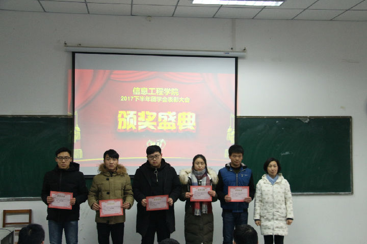 活动伊始,主持人介绍了与会人员。随后,崔兵老师宣读相关表彰文件;王瑞尧老师及王宇尧老师为优秀班级颁奖并合影留念;乔会珍老师及崔兵老师为优秀部门及优秀部长颁奖并合影留念;2138CC太阳集团第三届团学会部长代表为优秀干事进行颁奖并合影留念。活动表彰了15物联网工程一班 、15电子信息工程二班 16物联网工程一班等在内的六个优秀班级;办公室、组织部、外联部等在内的十个优秀部门;李敏、肖晨宇、白贺琪等在内的十个优秀部长;张泉福、杜凯、陈聪等在内的十个优秀干事。之后,学生会副主席张高松同学对本学期团学会工作进行了总结并对下学期的工作进行了规划。最后,辅导员崔兵老师进行了考前动员,告诫同学们一定要谨遵考试规定,并预祝大家能在考试中取得傲人的成绩。