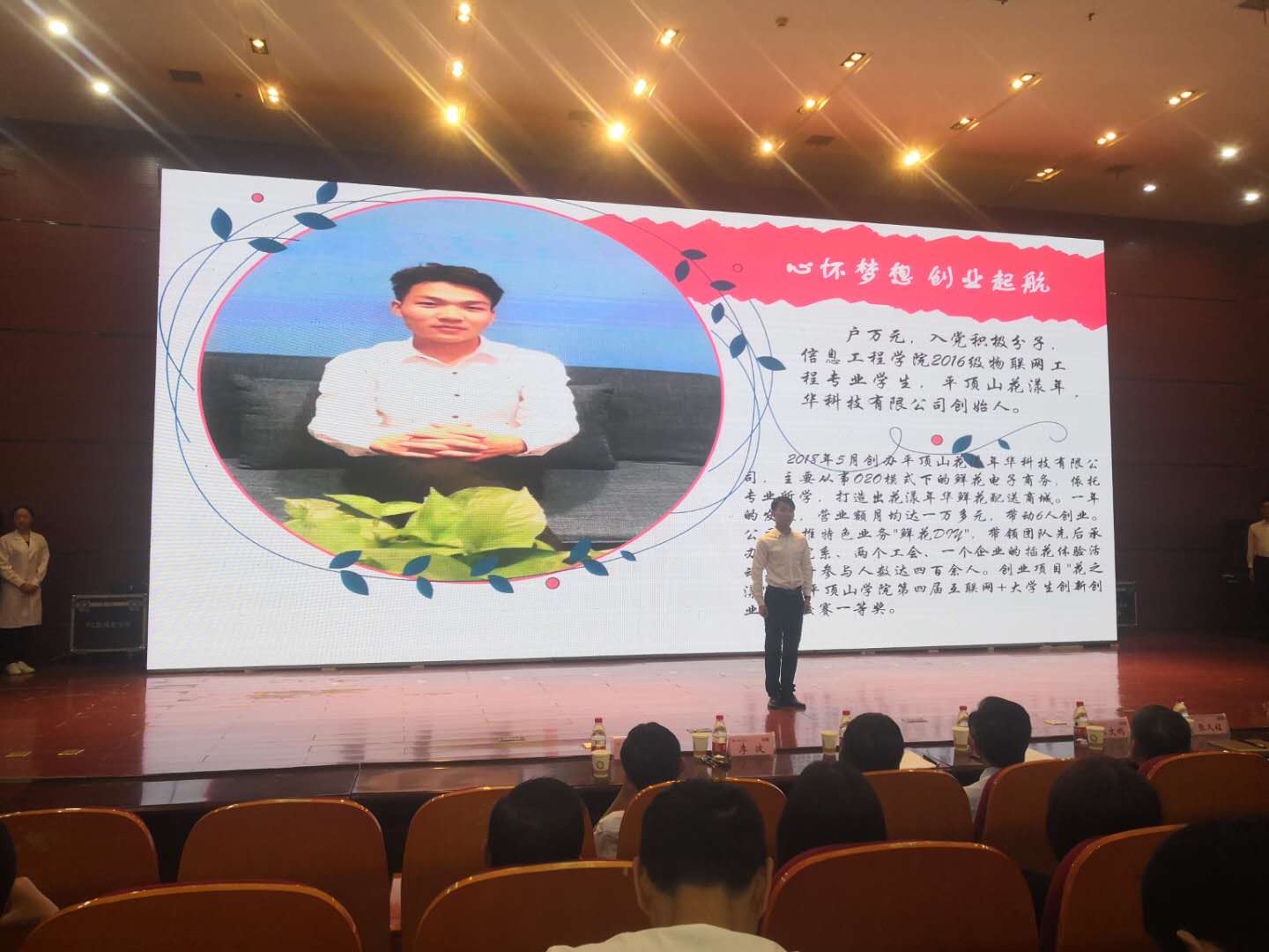 2018年4月初,他利用清明节假期的时间,只身前往云南、郑州、许昌等地花卉种植基地进行实地考察。对于人生地不熟的他,依靠高德地图完成了为期五天的考察,每天十二个小时基本上都在路上走着。考察回来之后便着手入住2138cc太阳集团创新创业中心,于2018年5月4日成立平顶山花漾年华科技有限公司。随即便展开了他的创业之路,虽然一路之上很辛苦,出现许许多多的难题,但他凭借坚持不懈的毅力、自强不息的精神坚持了下来。他觉得相比创业前自己所做的,已经幸福很多了,一年的努力,他收获了不仅仅是现在的“花漾年华 花艺(学院店)”,更多的是个人的成长。