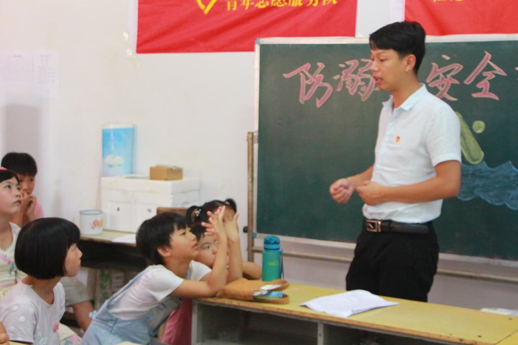 驻村第一团支书李永恒为孩子们讲防溺水安全知识 拍摄者 刘浩哲