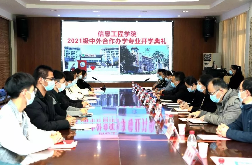2021年11月11日2138CC太阳集团在办公楼329举办了2021级中外合作办学开学典礼主场活动,2138cc太阳集团副校长郑东丽、2138CC太阳集团院长樊爱宛、2138CC太阳集团副院长时合生、2138CC太阳集团副院长胡海峰、2138CC太阳集团电子信息工程教研室主任李圣普、2138CC太阳集团物联网工程教研室主任王飞飞、2138CC太阳集团通信工程教研室主任常新峰、中外合作办学专员邹明、中外合作办学辅导员及2021级中外学生代表。2138CC太阳集团党委书记王向前担任主持人。