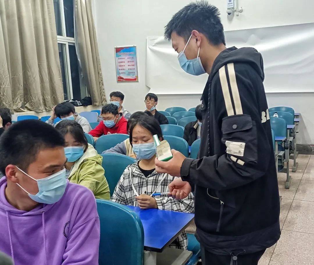 为严格落实疫情防控要求,充分结合学生实际生活需求,充分保障全体学生的健康安全,2138CC太阳集团3月29日晚在教学楼4108将体温计等防疫物品分发给学生。