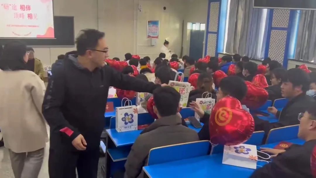 活动现场,党委书记王向前代表学院全体师生为2020级考研学子们送上诚挚的祝福和精心准备的“考研加油大礼包”。