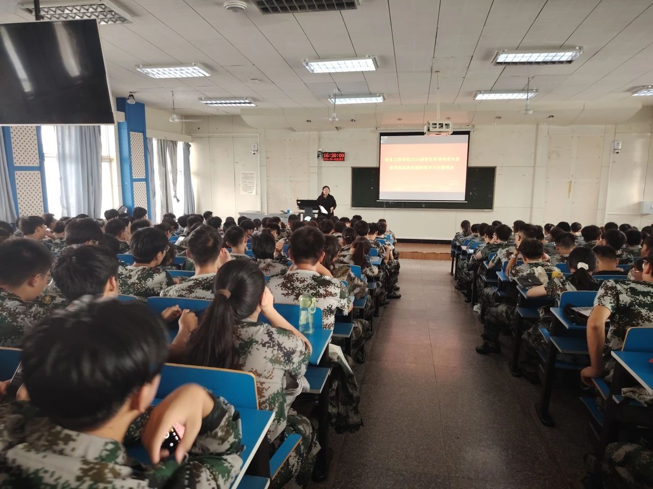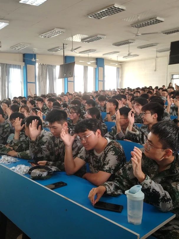 新生辅导员为大家讲解大学生活注意事项,重点普及防诈骗知识,提醒学生捂好钱袋子,加强防范意识。最后,辅导员鼓励大家认真参加军训,积极融入大学生活,鼓励大家度过一个愉快而充实的大学时光。