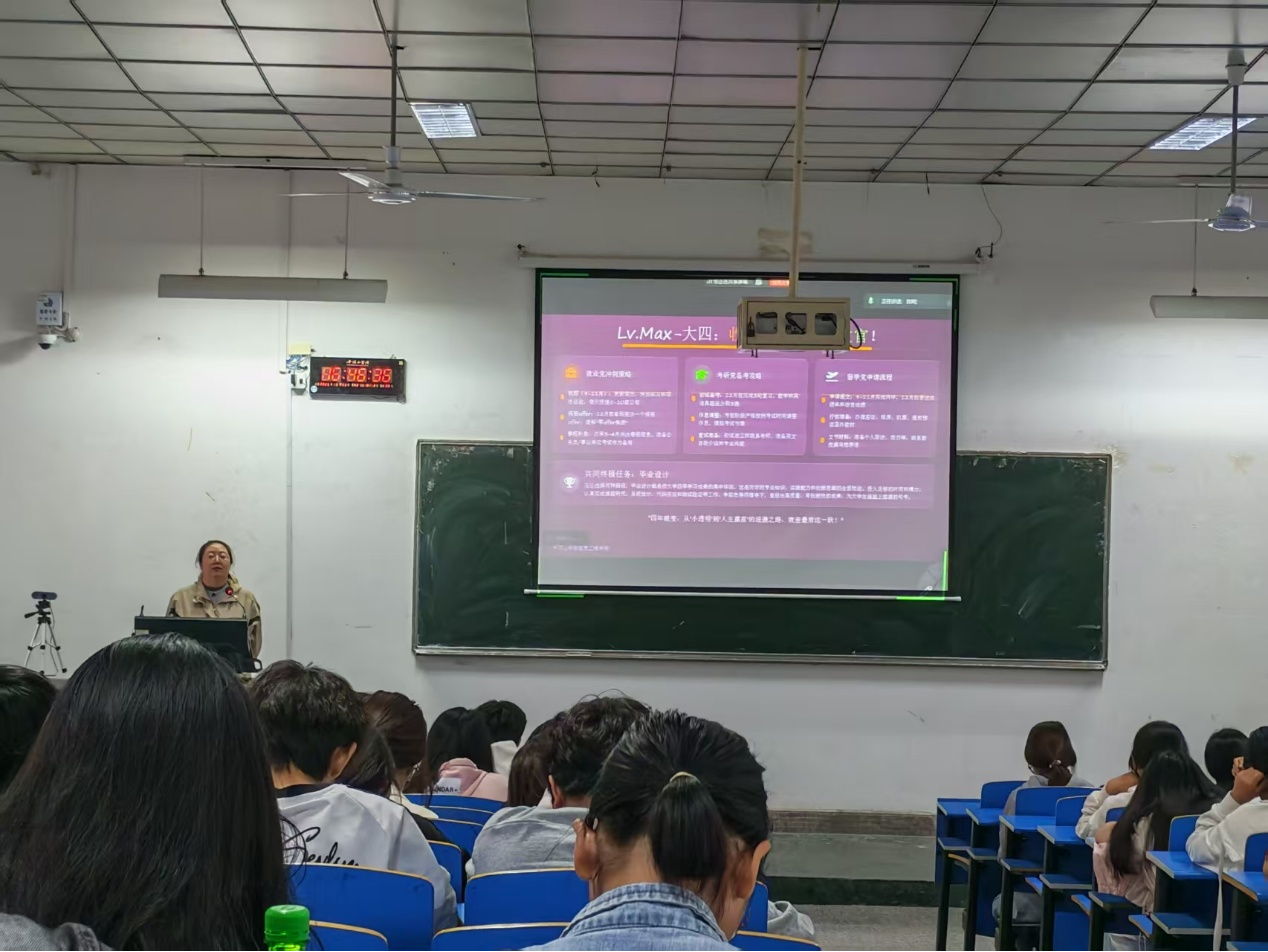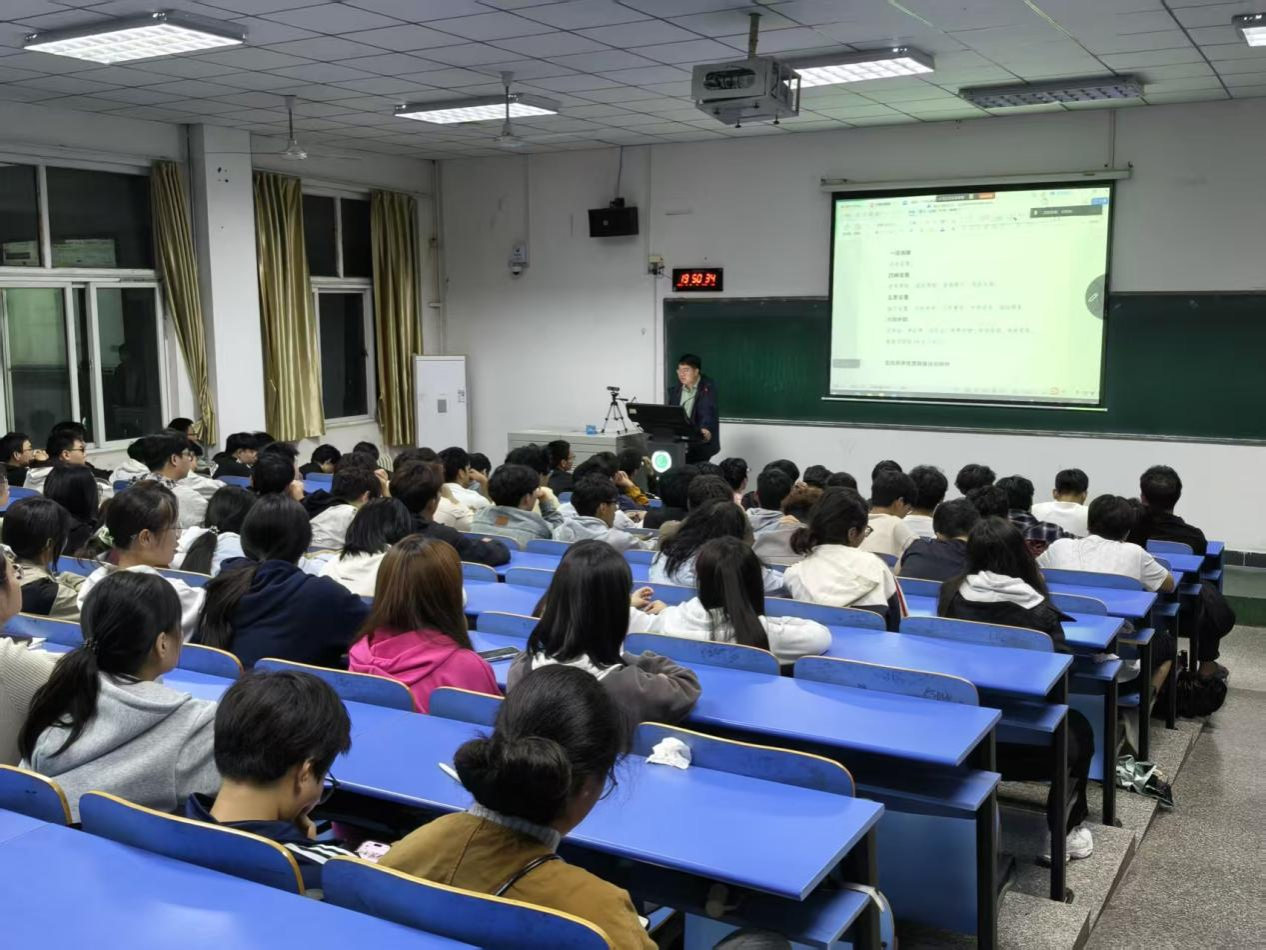 学工办公室主任赵珊珊首先为新生们带来了大学生职业规划专题讲座。赵老师强调,大学是职业生涯的起跑线,科学的规划至关重要。她通过生动的案例,深入浅出地讲解了如何结合专业特色、个人兴趣与市场需求,进行自我探索和职业目标设定,鼓励同学们“从大一开始思考未来,将学业规划与职业梦想紧密相连,为四年后的高质量就业或深造打下坚实基础”。