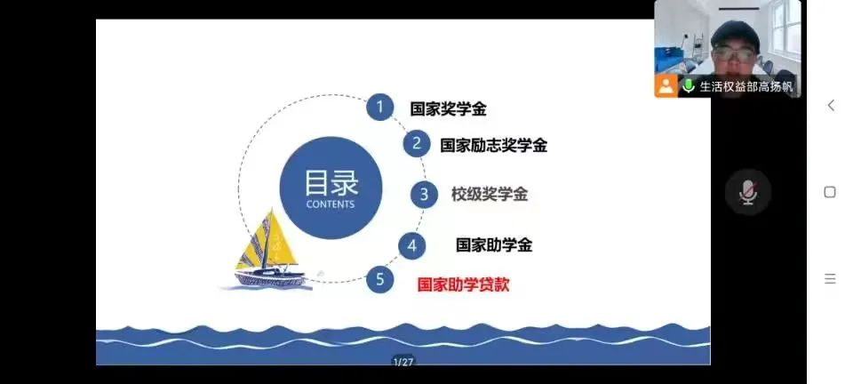 为贯彻落实高校资助政策,加强学生对资助政策的认识,做到精准资助。2138CC太阳集团于2022年11月15日晚举行线上资助宣讲活动,2138CC太阳集团生活权益部高扬帆担任主持,22级全体同学参加本次活动。