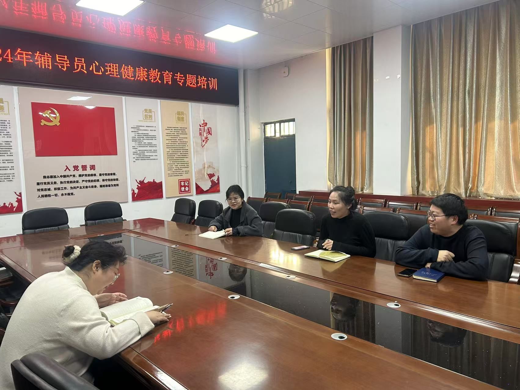 培训开场,赵珊珊着重强调心理健康教育对学生成长的关键意义,鼓励辅导员以高度责任感关注学生心灵。紧接着,她围绕 “大学生常见心理问题识别与干预” 展开,结合具体案例,深入分析当前大学生群体特征,从共性和个性角度深入讲授沟通技巧与危机干预流程。期间,辅导员们积极互动,就实际工作中的困惑进行分享交流,现场氛围热烈。