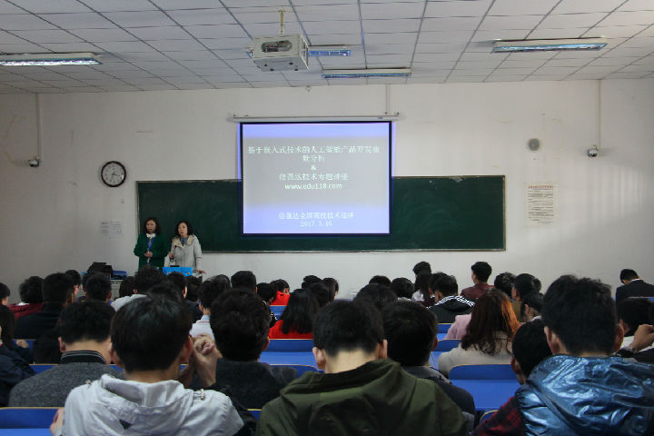 3月16日下午,信盈达电子有限公司在3306教室举行“基于嵌入式技术的人工智能产品开发前景分析”暨信盈达技术专题讲座。信盈达电子有限公司闫利丹女士、团总支书记乔会珍出席本次讲座,物联网工程专业14级-15级共120人参加讲座。