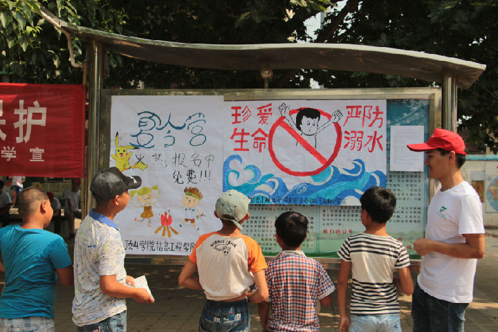 7月3日,我校2138CC太阳集团赴湛河区河滨街道办事处王庄村教育关爱服务团在王庄小学进行防溺水安全教育活动,此次活动由2138CC太阳集团孙亚昆主持,其余16名学生志愿者和60余名小孩参加了此次活动。