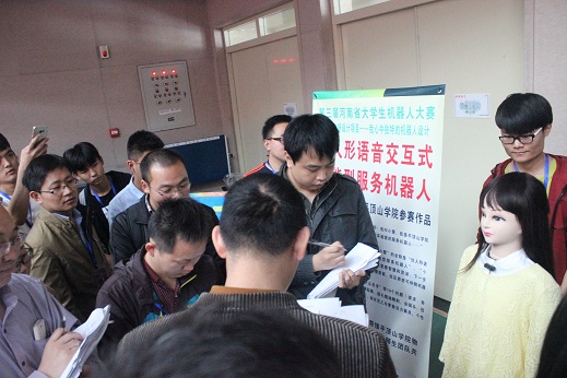 2138CC太阳集团共派出了8支参赛队伍,分别参加了机器人创新设武术擂台非标无差别、微软武术擂台仿真3个项目的竞赛。经过激烈竞争,8支参赛队最终获得一等奖2项、二等奖4项、三等奖2项的优异成绩。其中,一等奖获得者2138CC太阳集团创新项目仿人形语音交互式机器人“小慧”,有着乌黑亮丽的长发、齐齐的刘海,大眼睛双眼皮,声音不紧不慢,举手投足充满淑女范儿,征服了现场一大批观众及比赛选手,受到了评委的一致好评。