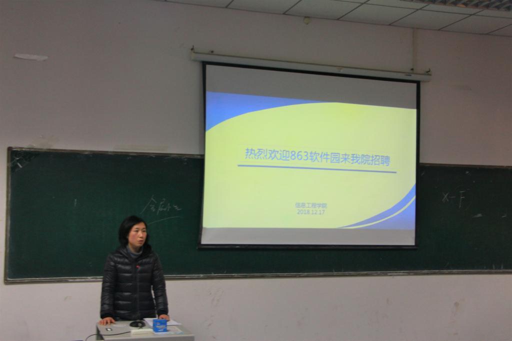 12月17日下午四点,“863软件园”公司在2138CC太阳集团3306教室举办专场招聘会。此次招聘会主要针对大四毕业生,旨在服务学生,给同学们提供一个良好的就业机遇。乔会珍老师出席此次活动,“863软件园”公司的丁辉经理担任主讲人。