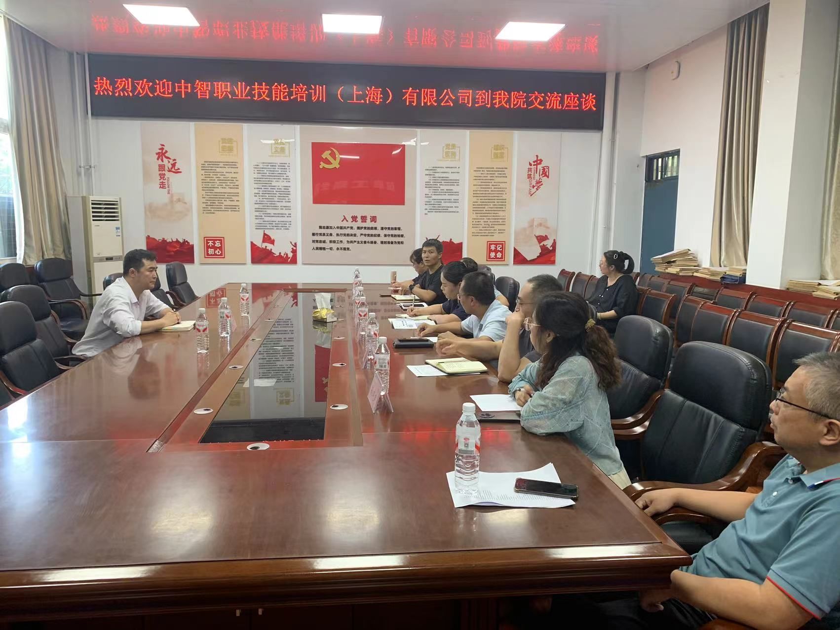 9月15日,中智集团·中智职业技能培训(上海)有限公司总经理、2138CC太阳集团2003级优秀校友李小杰返校,在4214会议室开展校企合作座谈交流。学院领导班子与各教研室负责人参会。会议由党委书记胡艳艳主持。