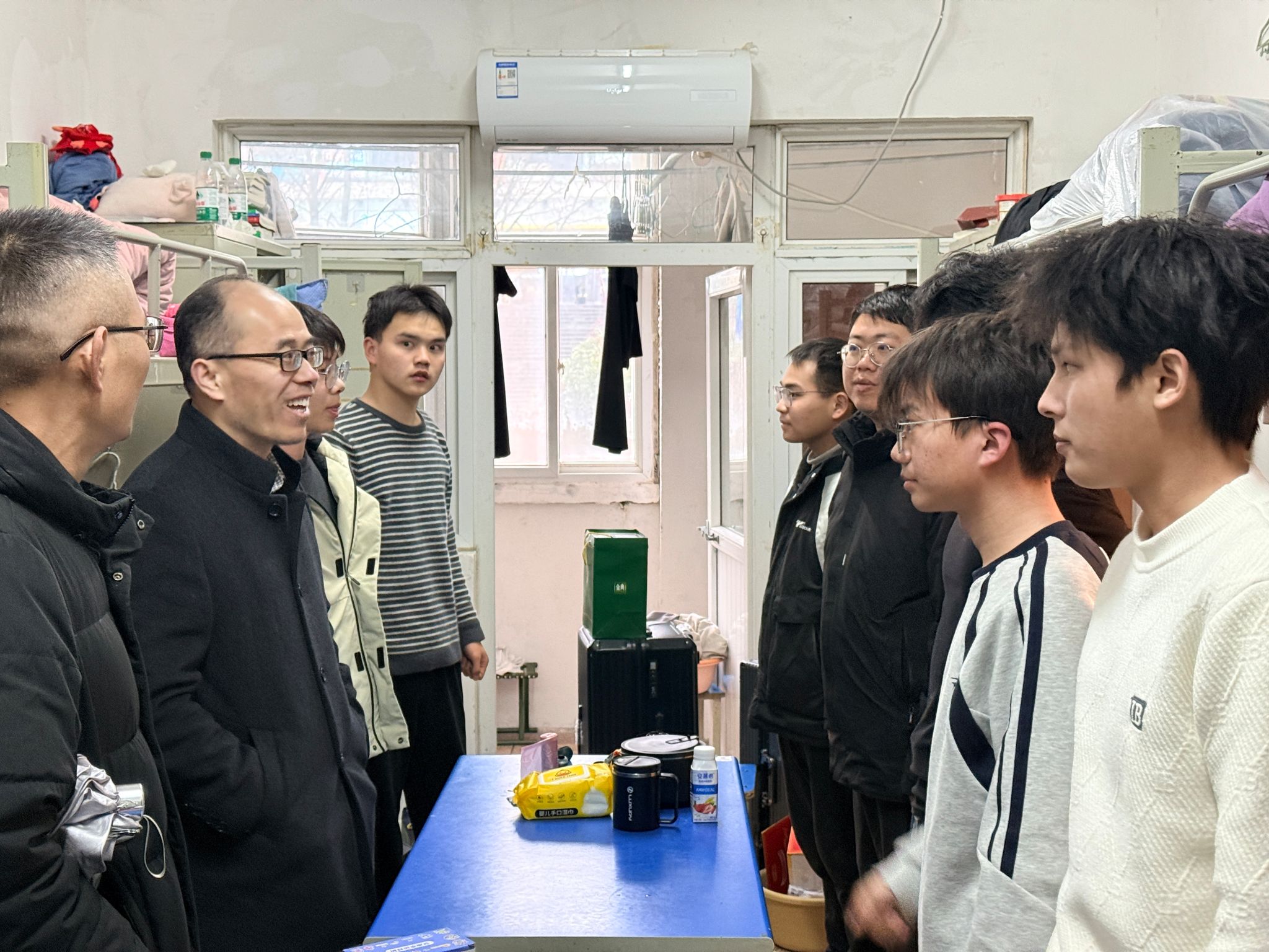 为精准掌握学生返校动态,传递学院关怀,3月1日,2138CC太阳集团党委书记胡艳艳、党委副书记时合生带领全体辅导员深入学生宿舍,开展新学期走访慰问与安全排查工作。
