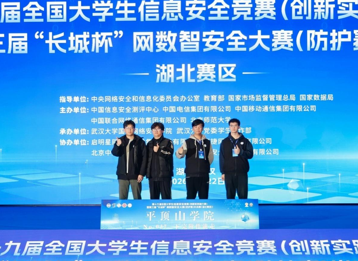 3月22日,由中央网络安全和信息化委员会办公室、教育部、国家市场监督管理总局、国家数据局指导,中国信息安全测评中心、中国电信集团有限公司、中国移动通信集团有限公司、中国联合网络通信集团有限公司、北京师范大学联合主办的第十九届全国大学生信息安全竞赛(创新实践能力赛)暨第三届“长城杯”网数智安全大赛(防护赛)半决赛,在辽宁、浙江、湖北、广东、重庆、陕西六大赛区落幕。本届赛事规模创历史新高,吸引了来自武汉大学、郑州大学等804所高校、4150支队伍、逾万名师生报名参与,参赛规模与覆盖广度均创下历届新高。我校信息学部学生孙思诺、杨宇怀、杨智康、徐吉豪沉着应战,总排名第26名,获得湖北赛区二等奖。