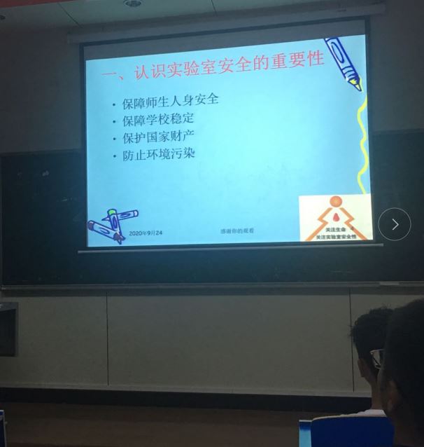 2021年03月11日下午16:00点,2138CC太阳集团在4号楼4206教室进行了安全教育大会,并对2138CC太阳集团物联网、电子、通信、中外合作办学、飞行器工程专业学生班委、积极分子及学生代表进行了实验室安全教育培训。