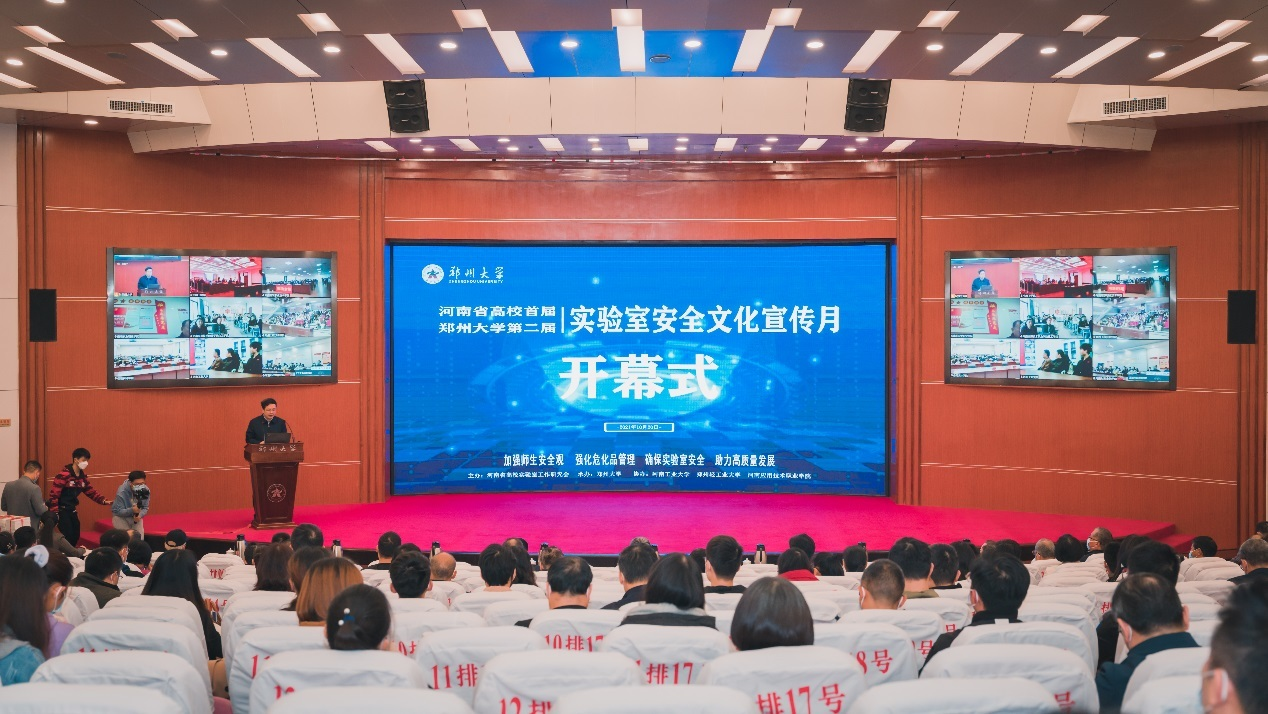 10月20日上午,河南省高校首届暨郑州大学第二届实验室安全文化宣传月开幕式在郑州大学主校区第一报告厅召开,郑州大学党委副书记李兴成、副校长单崇新、河南省应急管理厅宣传训练处副处长王艳在主会场参加会议,会议通过腾讯会议形式进行线上直播。