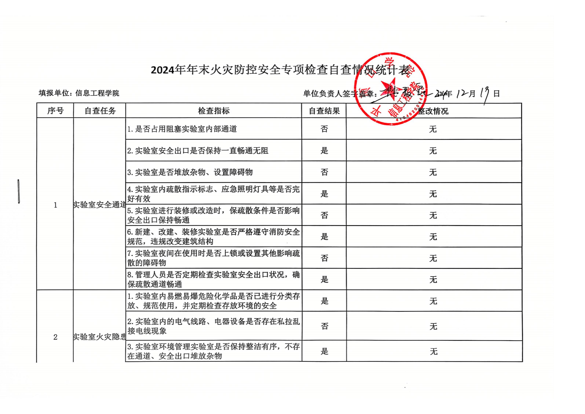 根据《河南省消防安全委员会关于印发2024年全省冬春火灾防控工作方案的通知》(豫消安〔2024〕10号)精神,按照《2138cc太阳集团2024年冬春火灾防控工作方案》要求,2138CC太阳集团实验中心在全院系实验室开展以“生命通道大起底、火灾隐患大排查、单位责任大落实、疏散逃生和应急救援大演练、消防能力大提升”为主要内容的冬春火灾防控工作。